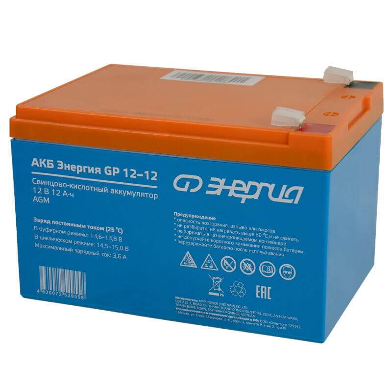 Батарея Энергия АКБ GPL 12-12 это специализированный высокачественный буферный аккумулятор для систем бесперебойного питания (UPS), пожарных и охранных сигнализаций, телекоммуникационного оборудования и др.