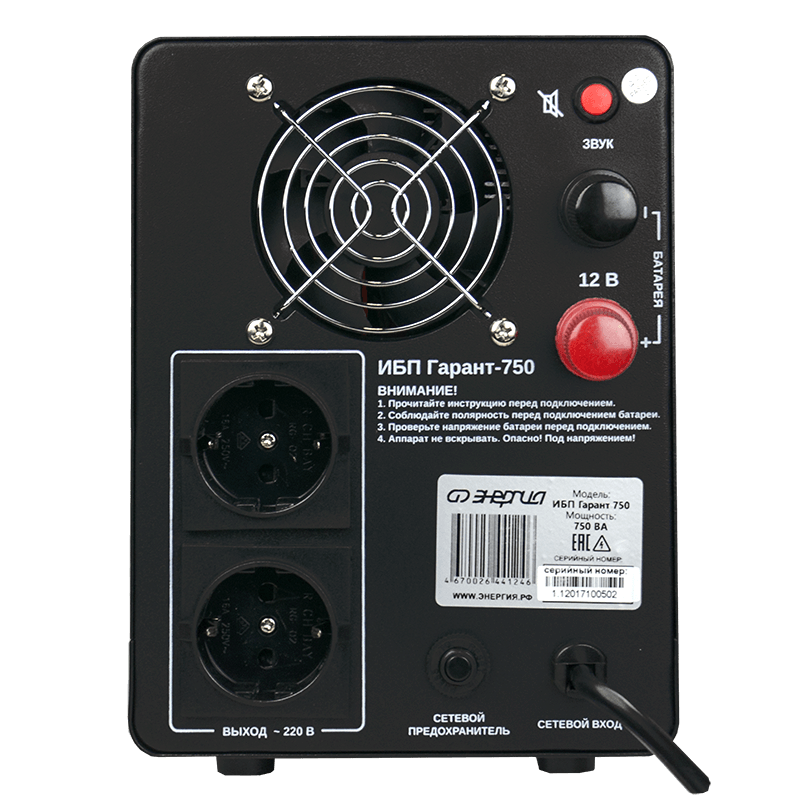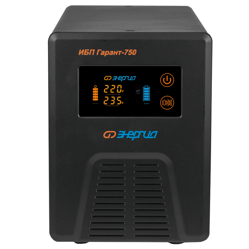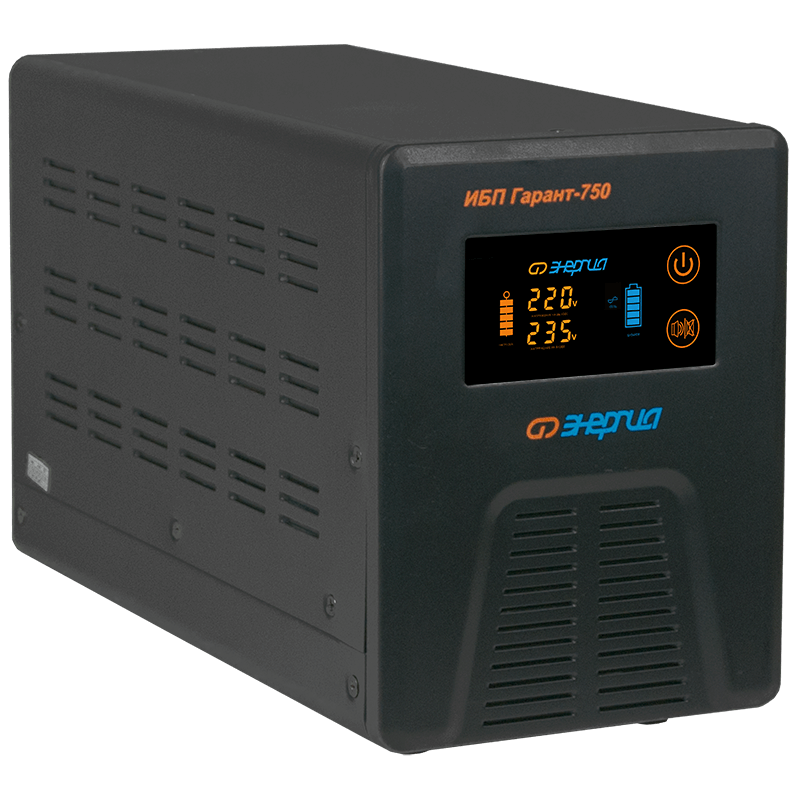 Энергия ИБП Гарант-750 представляет собой источник бесперебойного питания с внешней аккумуляторной батареей (приобретается отдельно) и встроенным стабилизатором, обеспечивающим поддержание нормального напряжения, без перехода на питание от АКБ, даже при значительных скачках и просадках напряжения. В основном, ИБП Гарант-750, применяются для защиты газовых котлов, автоматики въездных ворот, и других маломощных потребителей, для которых важно обеспечить защиту и беспрерывный режим работы в условиях отключения электроэнергии.