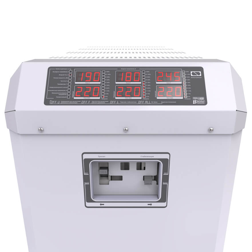 Стабилизатор напряжения Вольт Engineering Герц Про Э 16-3/125 предназначен для устранения скачков и просадок напряжения в бытовых и промышленных трехфазных электросетях. Стабилизатор является двухрежимным и в зависимости от выбранного режима работы может стабилизировать либо линейное напряжение 380/400В (для промышленности), либо фазное 220/230В на каждой фазе независимо (используются в быту).