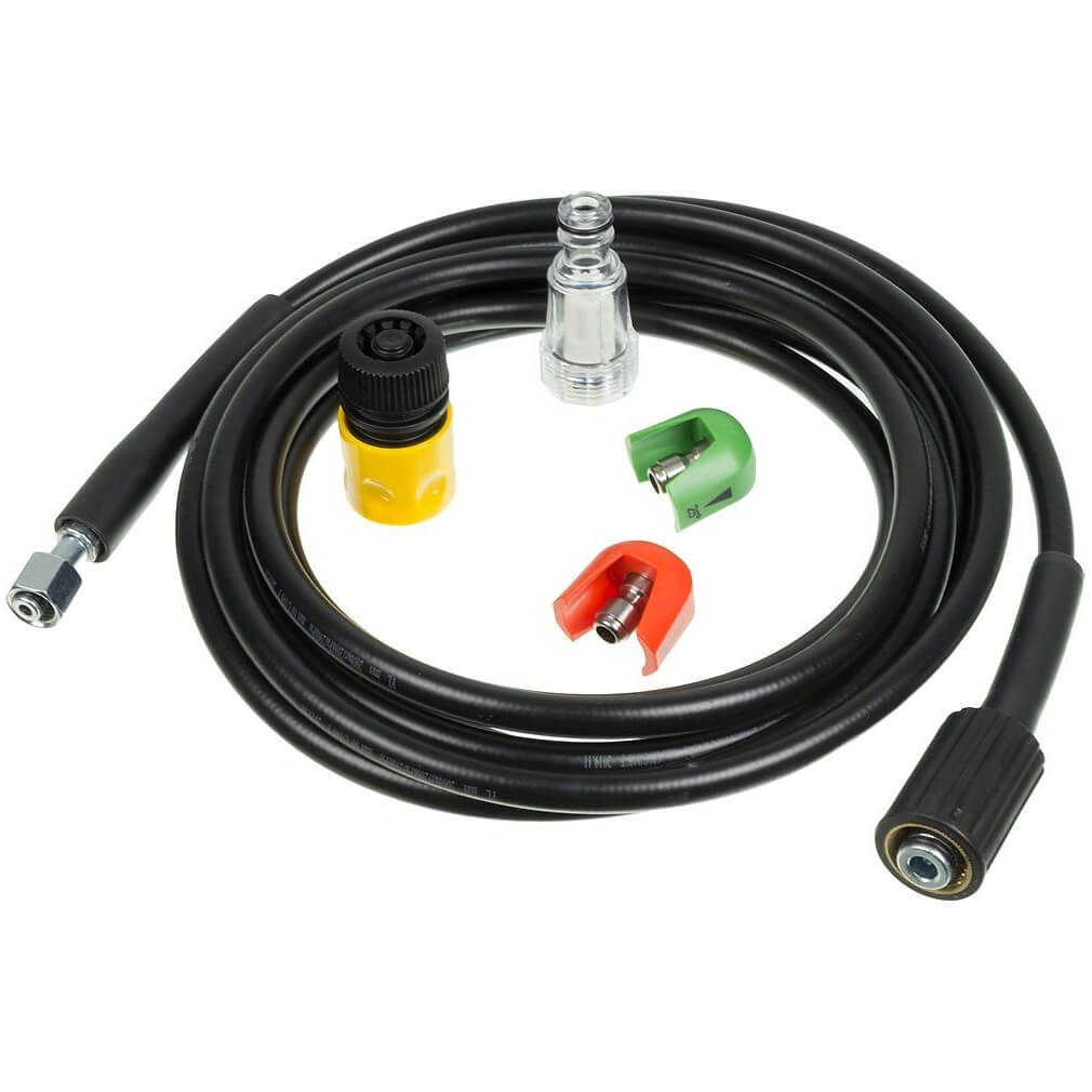 Мойка поддерживает забор воды как из водопровода, так и из резервуара с чистой водой, позволяя регулировать давление на выходе в диапазоне 30-165 бар. Пеногенератор, входящий в комплект, позволяет использовать моющие средства. Имеет держатель принадлежностей, сетевого шнура и шланга высокого давления, позволяя компактно хранить весь комплект и всегда иметь под рукой все необходимое.