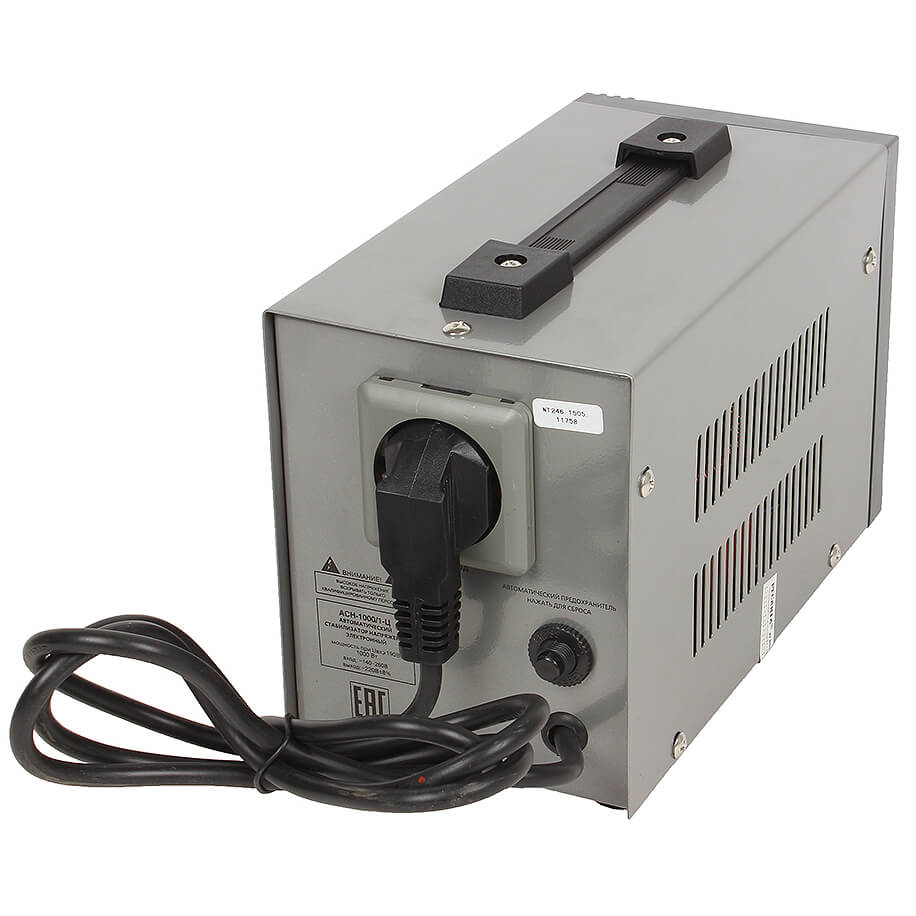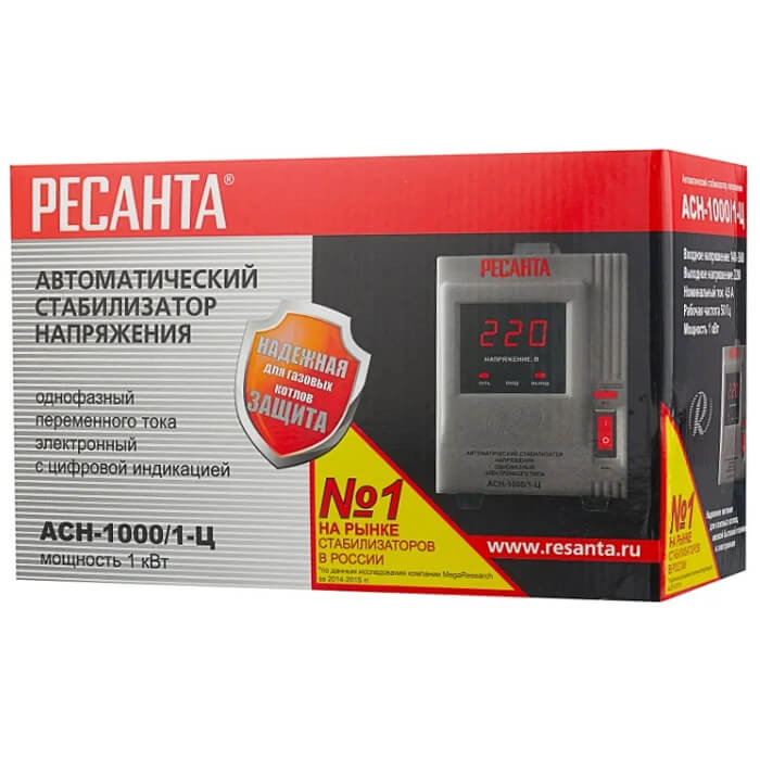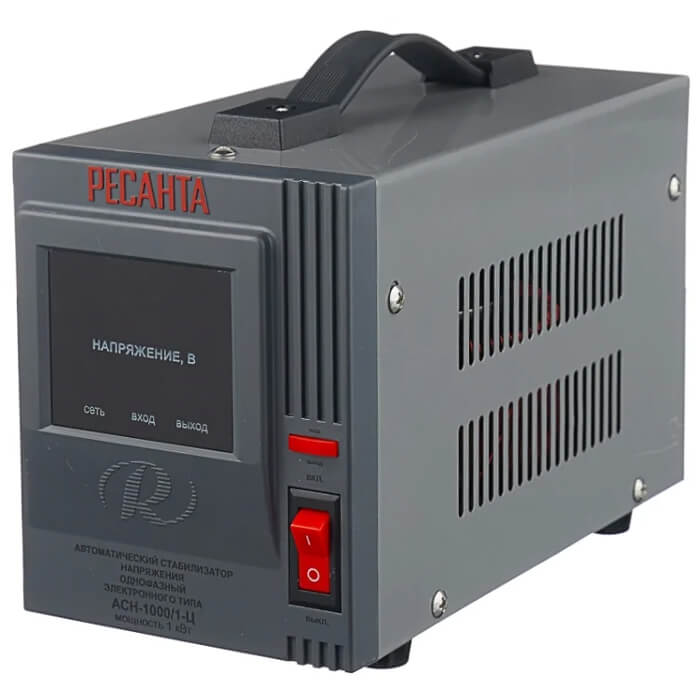 Стабилизатор Ресанта АСН-1000/1-Ц предназначен для выравнивания входного напряжения и защиты приборов от перепадов напряжения с суммарной мощностью до 1 кВт. Стабилизатор оснащен фильтрами сетевых помех, предотвращающими искажение частотной синусоиды, микропроцессорным управлением и цифровым индикатором напряжения, на котором отображаются текущие параметры напряжения. Прочный корпус защищает внутренние узлы аппарата от повреждений.