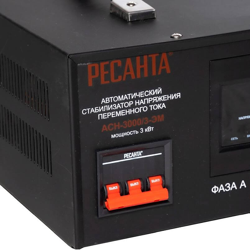 В конструкции стабилизатора Ресанта АСН-3000/3-ЭМ применены современные инновационные подходы, позволившие добиться удачного сочетания высокой надежности прибора, точности удержания выходного напряжения и его невысокой стоимости. В отличии от своих аналогов, стабилизатор оснащен многоступенчатой системой защиты, включающей в себя блоки защиты от коротких замыканий, перегрузки, обрыва фазы, пониженного и повышенного напряжения, фильтрами сетевых помех, а так же термозащитой, обеспечивающей абсолютную пожарозащищенность электросети.