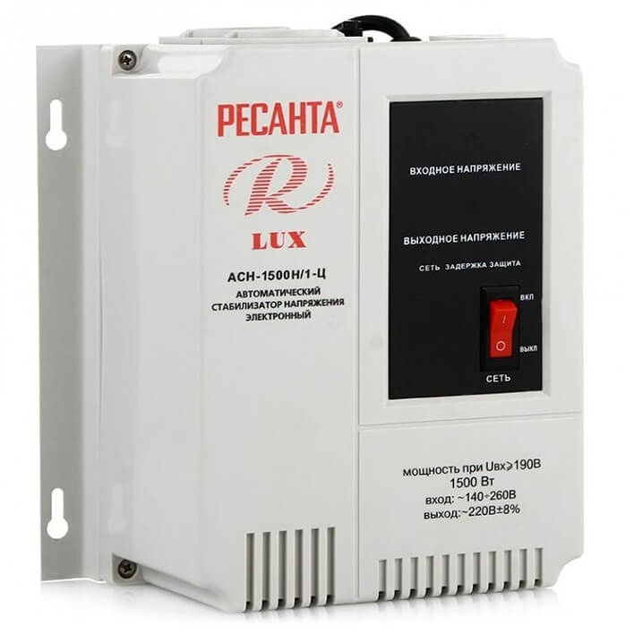 Настенный стабилизатор Ресанта LUX АСН-1500Н/1-Ц предназначен для выравнивания входного напряжения и защиты приборов от перепадов напряжения с суммарной мощностью до 1.5 кВт. Стабилизатор оснащен фильтрами сетевых помех, предотвращающими искажение частотной синусоиды, микропроцессорным управлением и цифровым индикатором напряжения, на котором отображаются текущие параметры напряжения. Прочный корпус защищает внутренние узлы аппарата от повреждений.