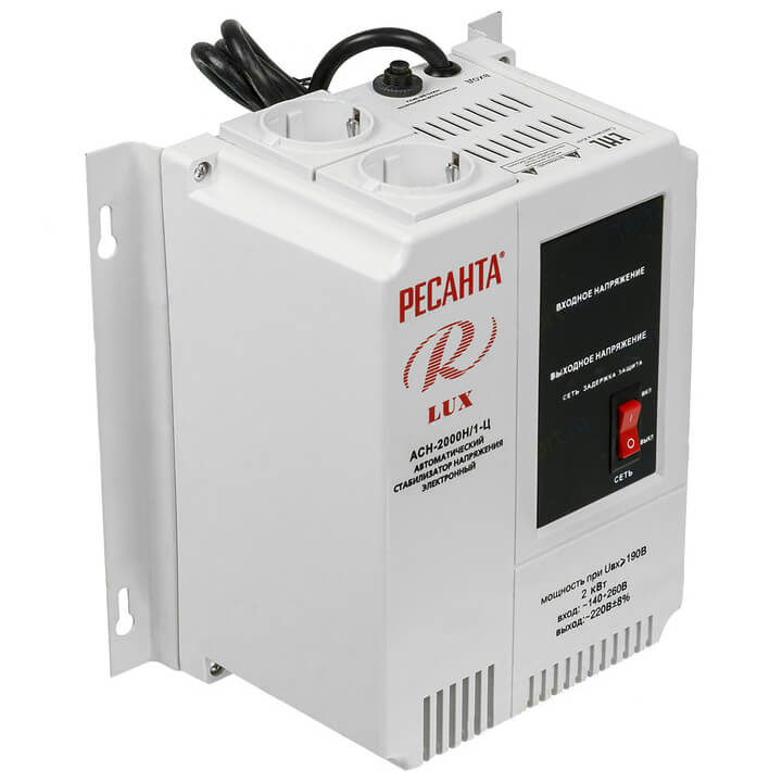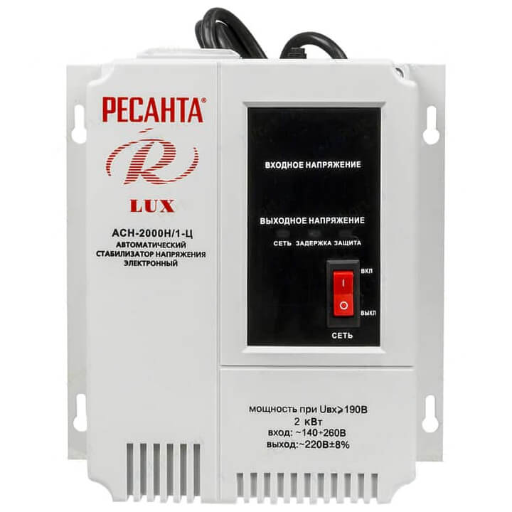 Настенный стабилизатор Ресанта LUX АСН-2000Н/1-Ц предназначен для выравнивания входного напряжения и защиты приборов от перепадов напряжения с суммарной мощностью до 2 кВт. Стабилизатор оснащен фильтрами сетевых помех, предотвращающими искажение частотной синусоиды, микропроцессорным управлением и цифровым индикатором напряжения, на котором отображаются текущие параметры напряжения. Прочный корпус защищает внутренние узлы аппарата от повреждений.