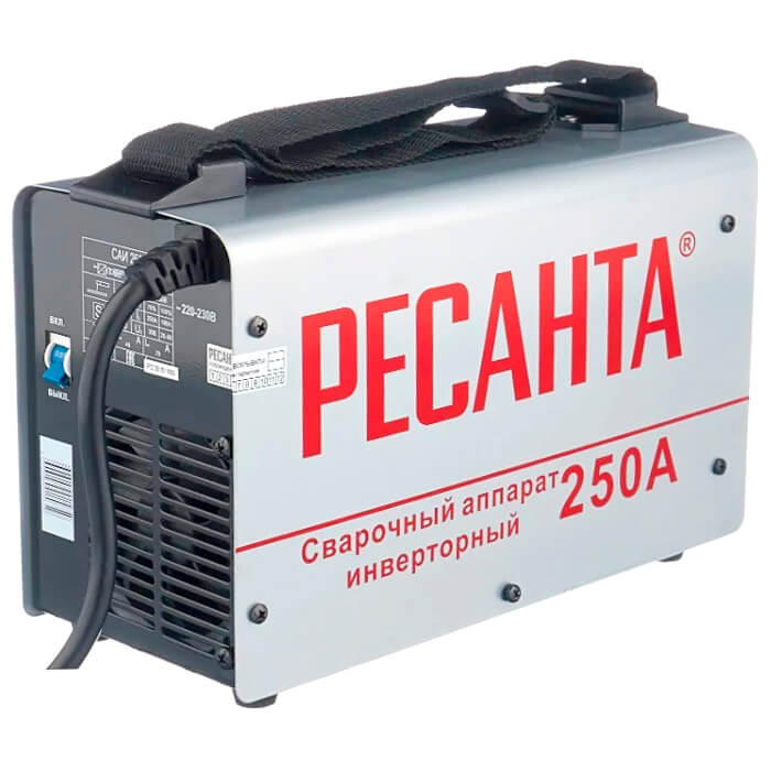Инверторный сварочный аппарат Ресанта САИ-250 предназначен для ручной дуговой сварки постоянным током (MMA), электродами диаметром до 6 мм.
