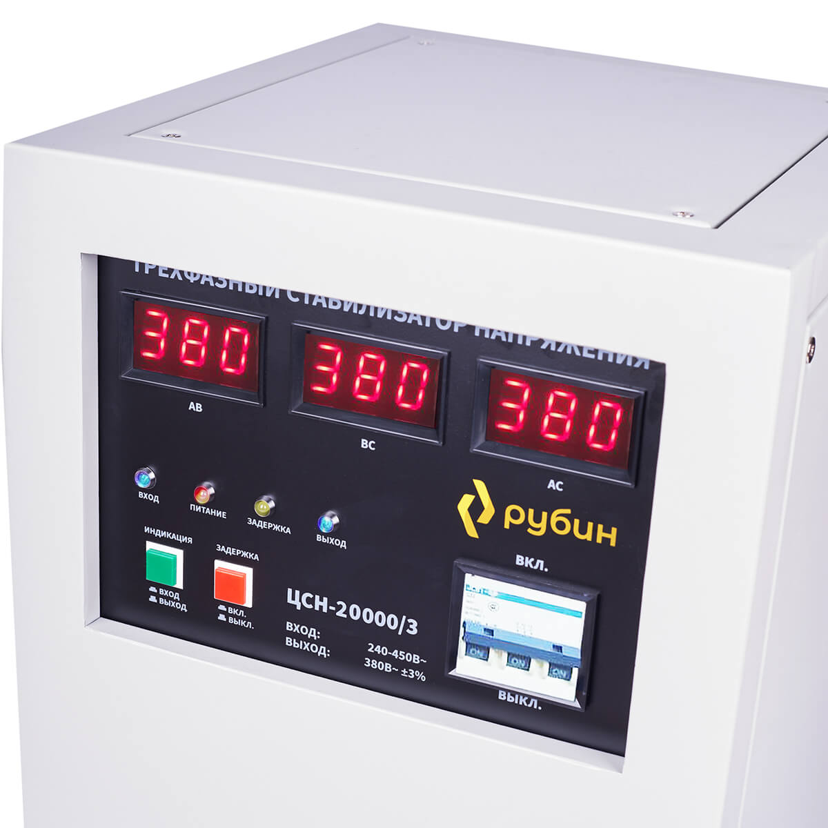 Трехфазный стабилизатор напряжения Рубин ЦСН-20000/3 предназначен для защиты от скачков и просадок напряжения в бытовых и промышленных трехфазных электросетях 380В. Основная область применения этого стабилизатора - загородное жильё, офисные и промышленные объекты с трехфазным подключением.