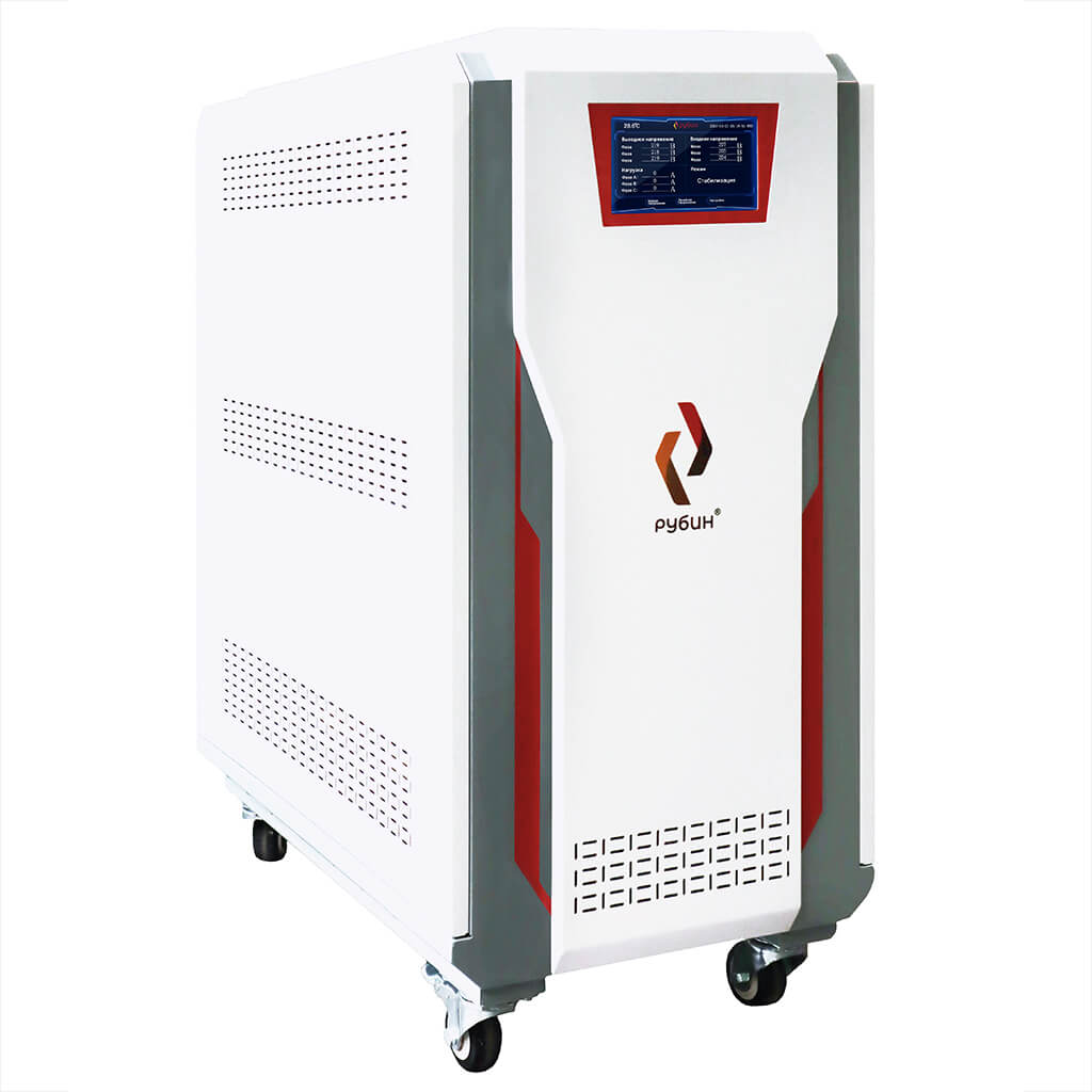 Стабилизатор Рубин ТСН-45000/3 относится к классу электронных стабилизаторов, его работа основана на полупроводниковых элементах (тиристор), что обеспечивает абсолютную бесшумность, высокую скорость реакции на изменение напряжения и идельную защиту. Стабилизатор имеет современное микропроцессорное управление с двойным резервированием и оснащен многофункциональным информационным сенсорным дисплеем.