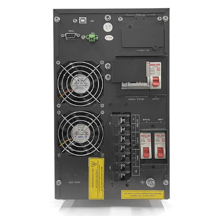 ИБП выполнен по современной технологии «on-line», заключающейся в преобразовании переменного тока в постоянный и его последующей регенерации обратно в переменный. При таком режиме аккумуляторы включены в работу постоянно, и, переход на питание от аккумуляторов происходит мгновенно. А выходное напряжение не подвержено влиянию колебаний в электросети, и поддерживается с высокой точностью и идеальной синусоидальной формой в широком диапазоне колебаний и скачков входного напряжения (110 – 288 В).