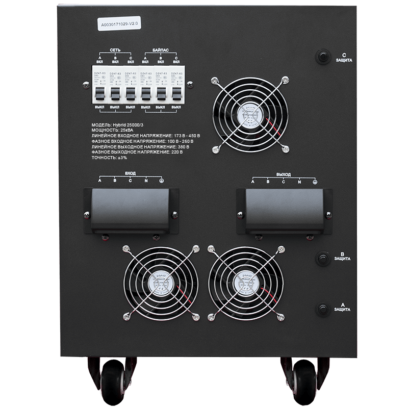 | Мощность стабилизатора | 25 кВA (17…25 кВт) |