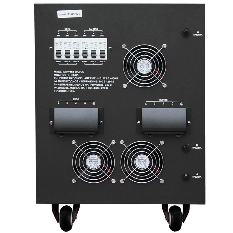 Энергия Hybrid 30000/3 относится к классу гибридных (комбинированных) стабилизаторов и сочетает в себе плавность регулировки электромеханических стабилизаторов и возможность работы на крайне низких напряжениях (до 80В фазного напряжения) электронных. Фактически, в одном корпусе собраны два стабилизатора: электромеханический и электронный, позволяя сочетать лучшие черты обоих типов. Стабилизатор отличается высокой точностью (погрешность всего 3%) и режимом плавной регулировки, обеспечивающий максимально комфортный режим питания для чувствительной техники. Он не искажает синусоидальную форму напряжения и не создает помех при работе, поэтому может использоваться в таких ответственных областях как питание медицинского оборудования, аудио и видео-аппаратуры и других устройств, чувствительных к резким перепадам напряжения и сетевым помехам.