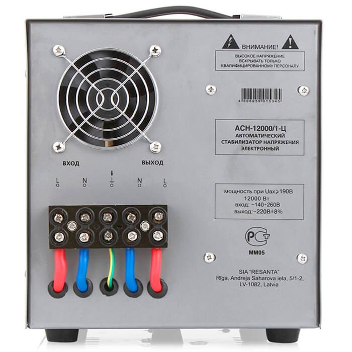 Стабилизатор Ресанта АСН-12000/1-Ц предназначен для выравнивания входного напряжения и защиты приборов от перепадов напряжения с суммарной мощностью до 12 кВт. Стабилизатор оснащен фильтрами сетевых помех, предотвращающими искажение частотной синусоиды, микропроцессорным управлением и цифровым индикатором напряжения, на котором отображаются текущие параметры напряжения. Прочный корпус защищает внутренние узлы аппарата от повреждений.