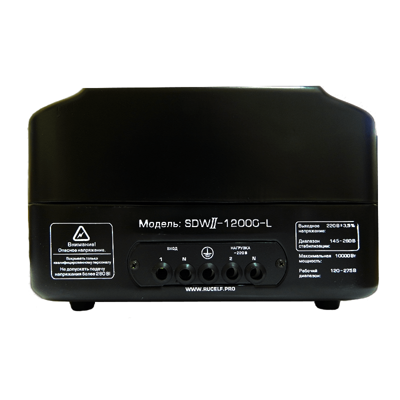 Стабилизатор Rucelf SDW II-10000-L применяется для защиты от скачков и просадок напряжения в однофазных сетях 220В мощностью до 10кВт. Стабилизатор обладает высокоточной плавной регулировкой напряжения без искажения синусоиды - режим питания, максимально комфортный для бытовой техники и освещения.